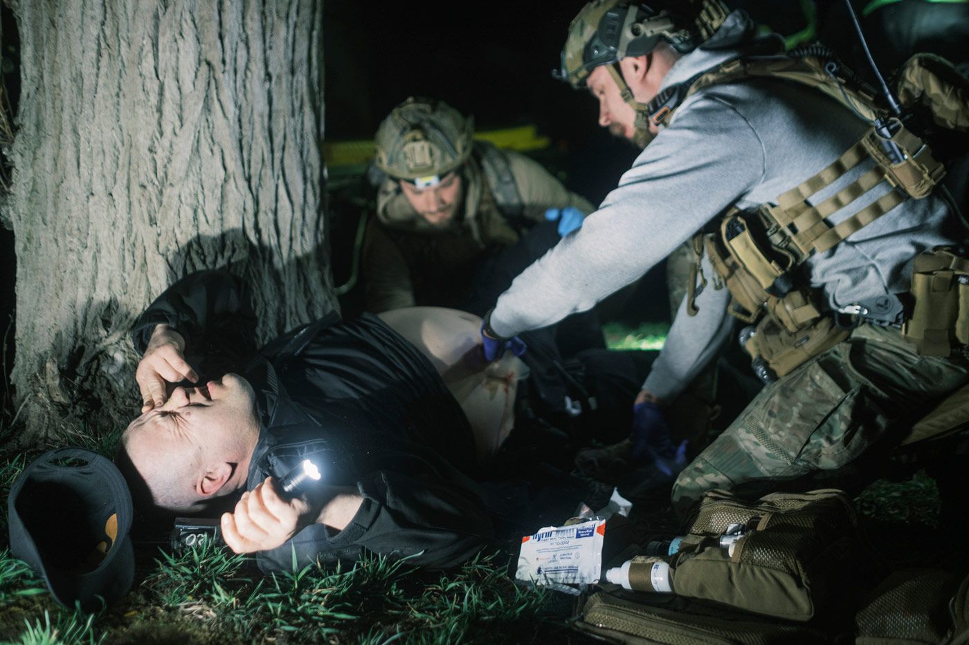 Спасатели прибыли на место и начали операцию по спасению 67-летнего мужчины, которого завалило плитами перекрытия на третьем этаже, когда сами попали под повторный удар беспилотников.