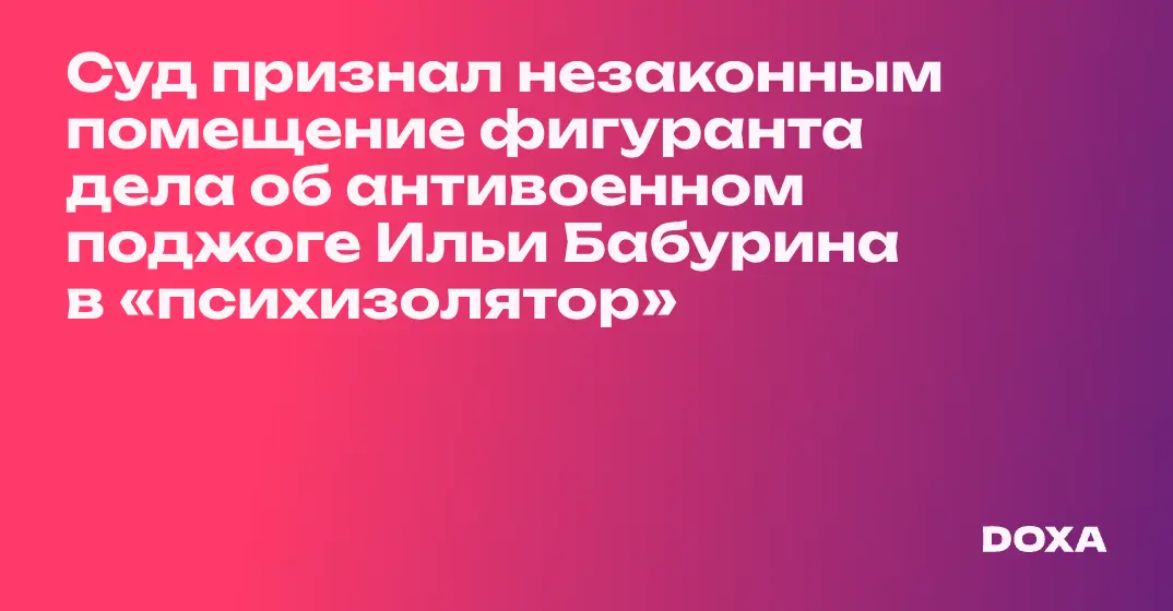 Суд признал незаконным помещение фигуранта дела об антивоенном поджоге Ильи Бабурина в «психизолятор»