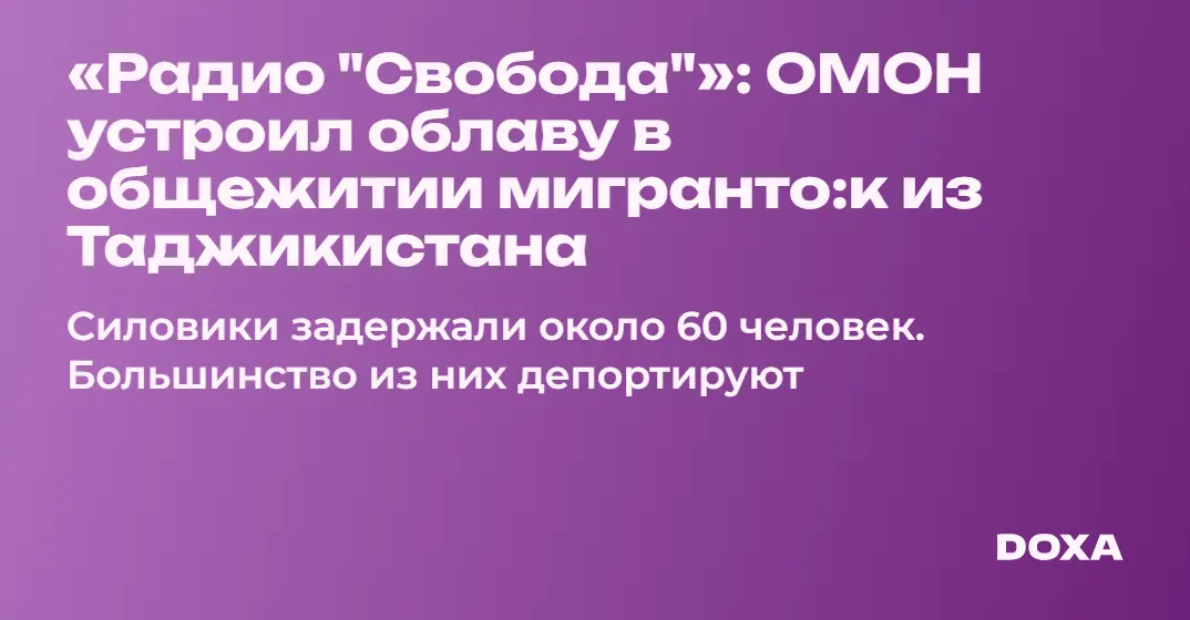 «Радио "Свобода"»: ОМОН устроил облаву в общежитии мигранто:к из Таджикистана