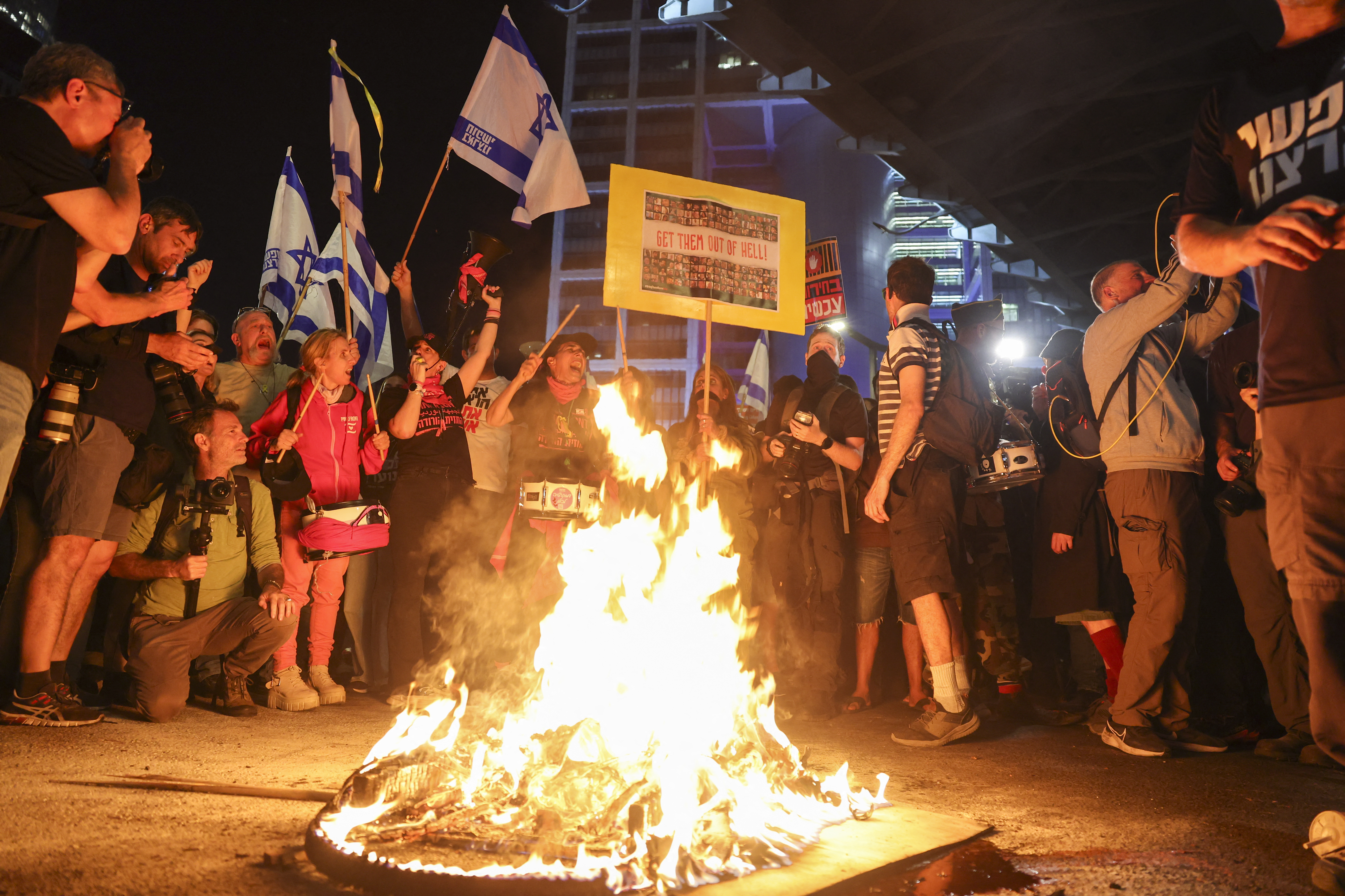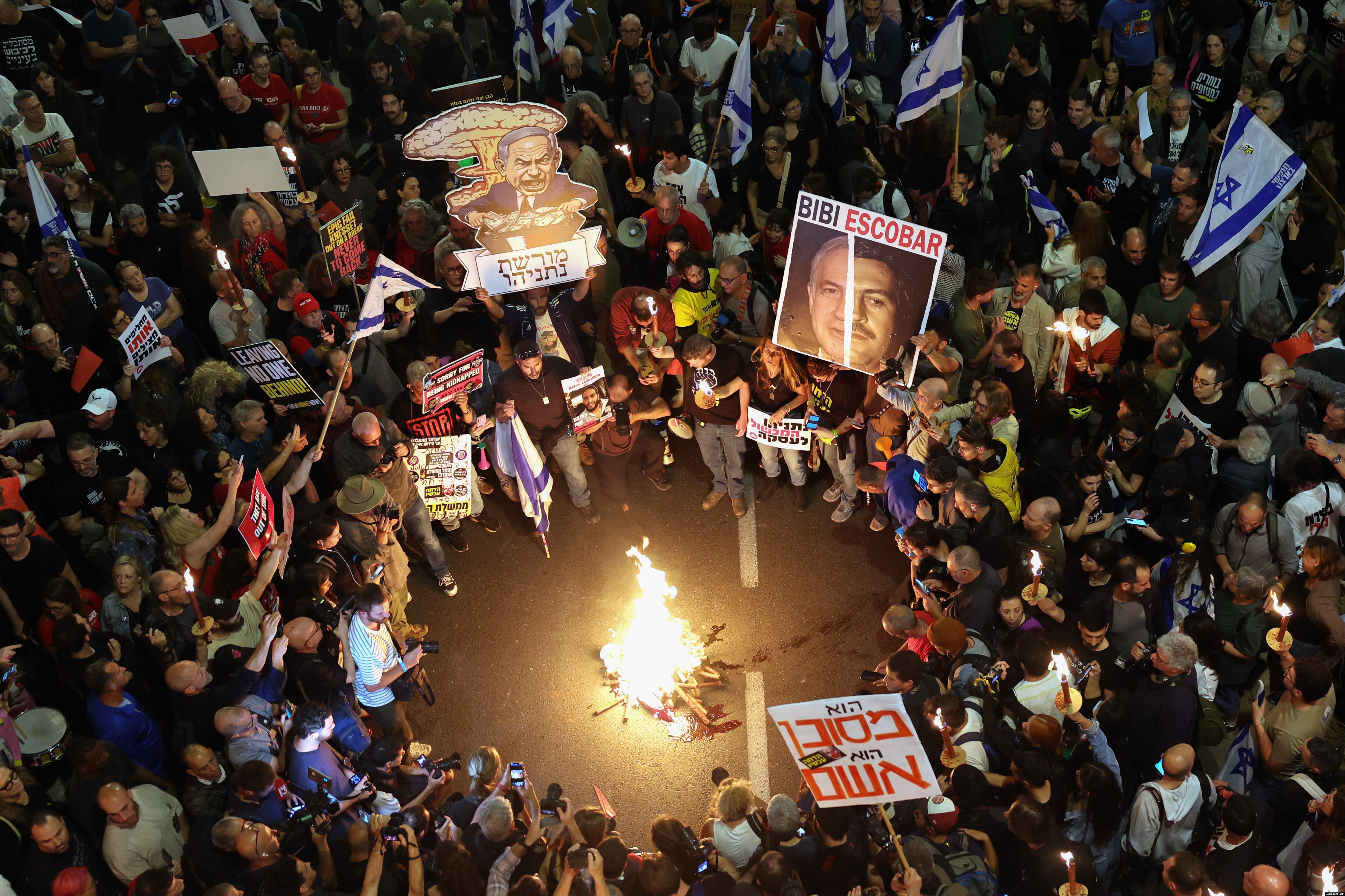 В Тель-Авиве протестующие направились к штаб-квартире профсоюза Гистадрут, чтобы потребовать от председателя организации объявить крупномасштабную забастовку. Таким образом протестующие хотят оказать давление на правительство, чтобы оно согласилось заключить сделку по освобождению заложников из сектора Газа.