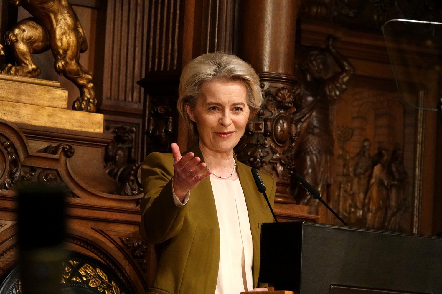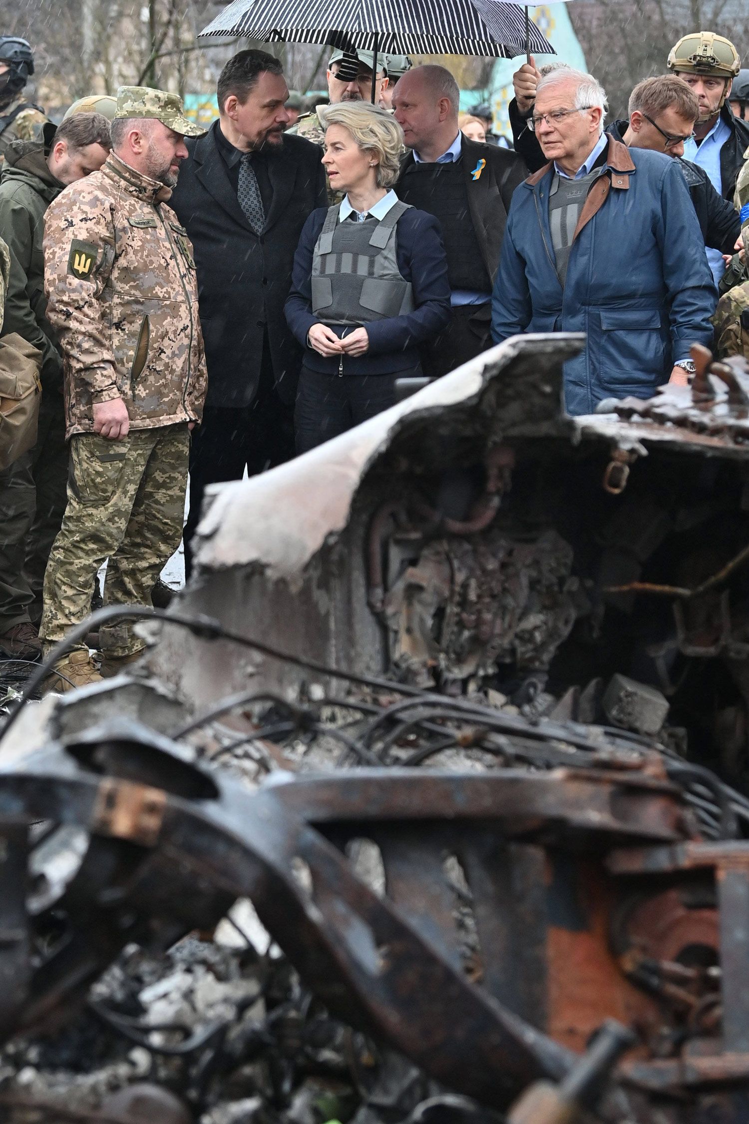 В апреле 2022 года, через полтора месяца после начала войны, глава Еврокомиссии посетила Киев, а в июне объявила о предоставлении Украине статуса кандидата в члены ЕС (хотя в европейских столицах этому были рады далеко не все). Кроме того, она поддержала идею украинских властей использовать доходы от замороженных российских активов для закупок вооружения для ВСУ.