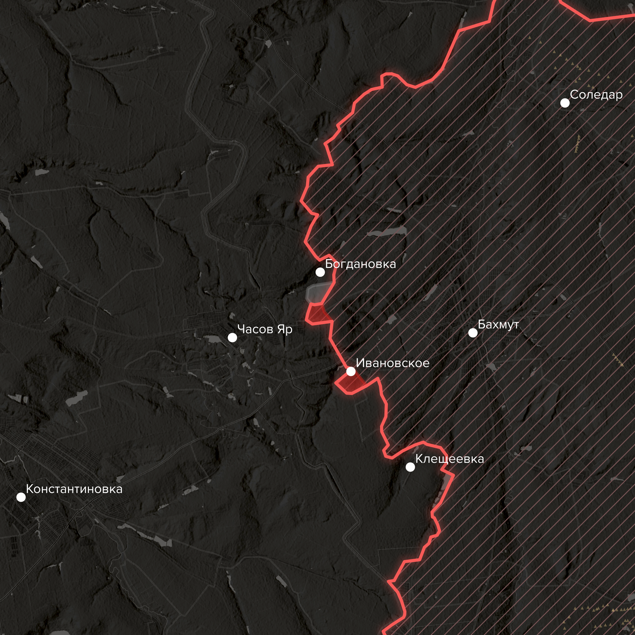 - Одновременно ВС РФ наступали на флангах этого прорыва — на села Богдановка, большую часть которого контролировали ВСУ, и Ивановское (тут российские войска захватили значительную часть застройки еще несколько недель назад; однако заявления Минобороны РФ о полном контроле над селом опровергаются видео).