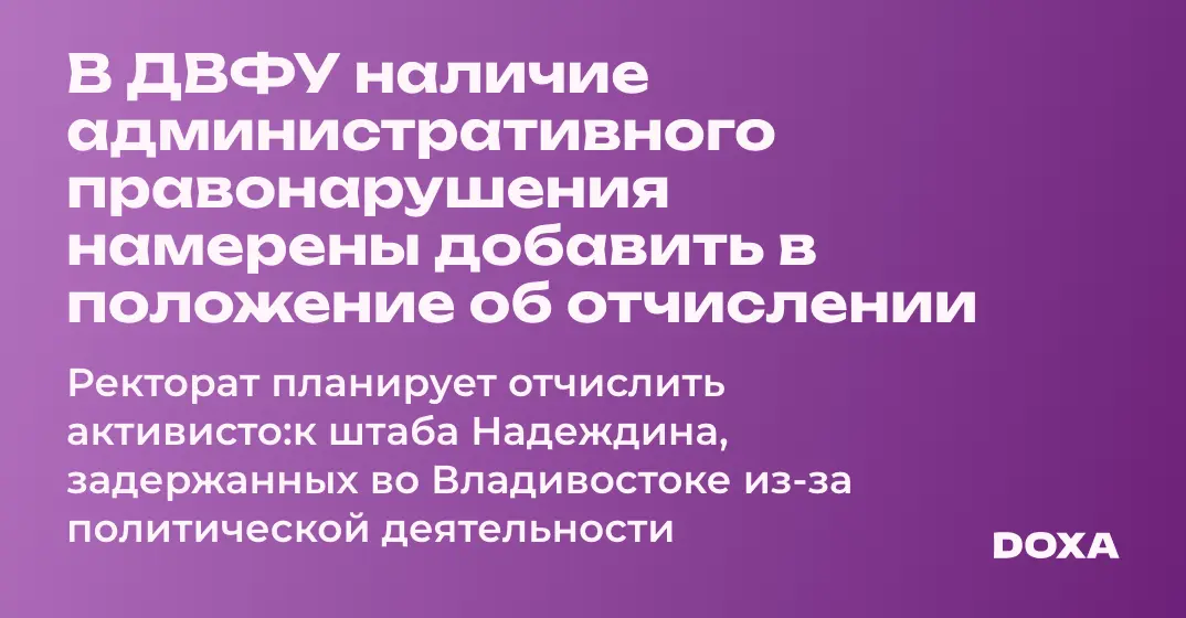 В ДВФУ наличие административного правонарушения добавили в положение об отчислении. Ректорат планирует отчислить активисто:к штаба Надеждина во Владивостоке за политическую деятельность.
