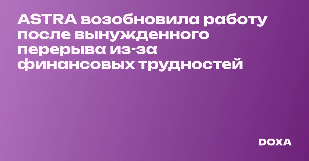 ASTRA возобновила работу после вынужденного перерыва из-за финансовых трудностей