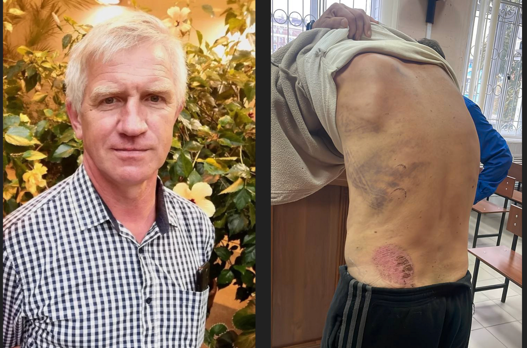 Three days later, law enforcement officials brought him back home for a search of the property. His wife Natalia Vishnevskaya then noticed numerous signs of torture on her husband's body, which she shared with the Telegram channel Mozhem Obyasnit’ (lit. “We Can Explain”).