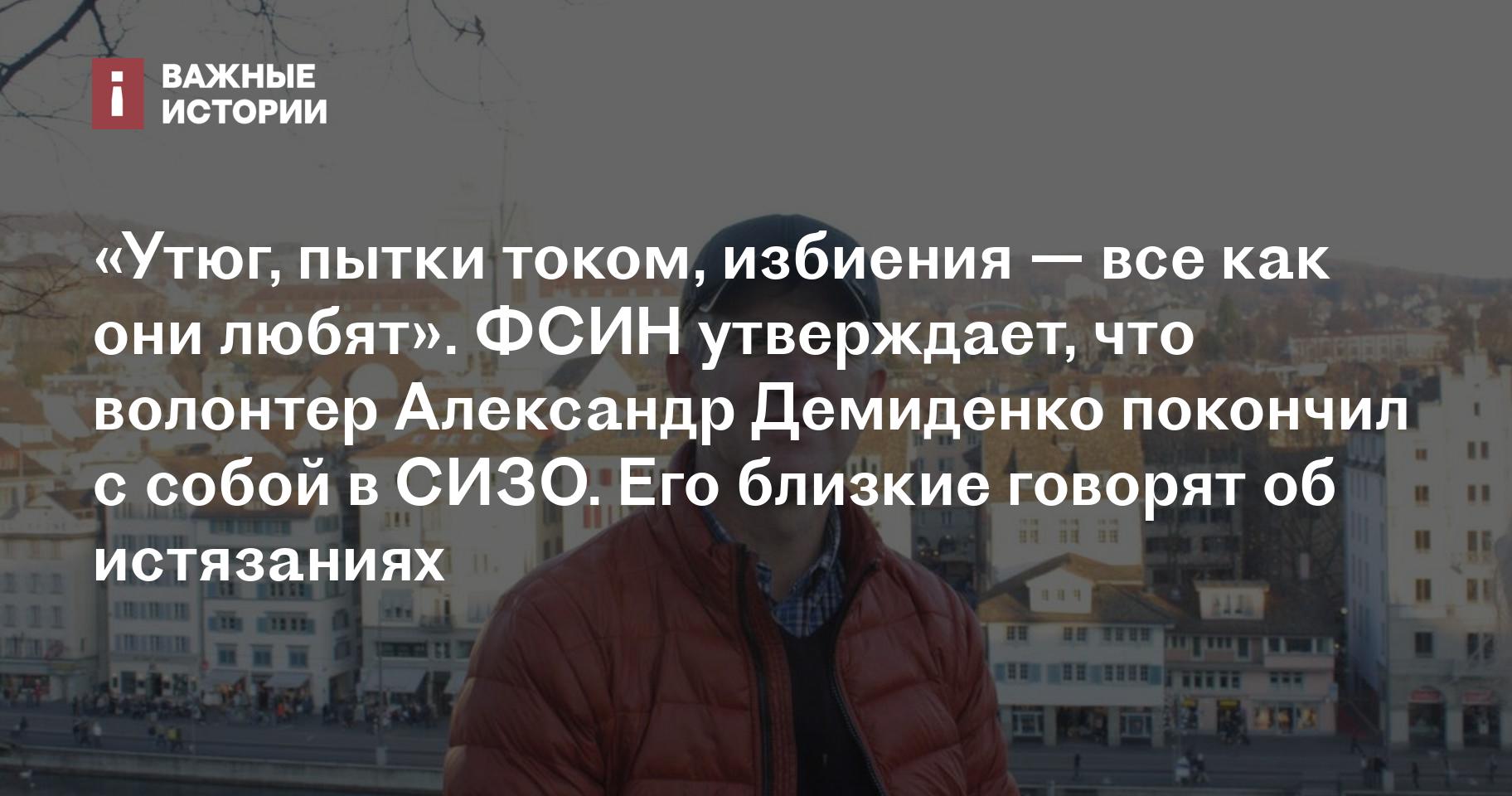 «Утюг, пытки током, избиения — все как они любят». ФСИН утверждает, что волонтер Александр Демиденко покончил с собой в СИЗО. Его близкие говорят об истязаниях