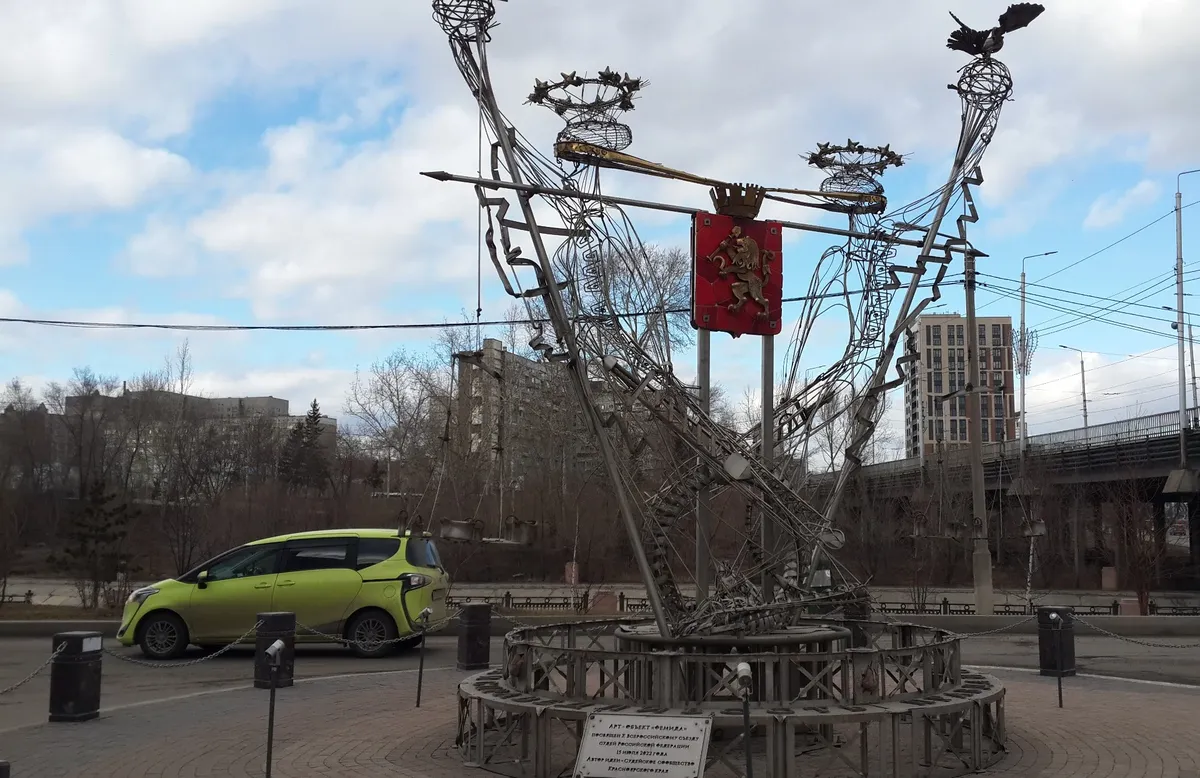 Из таблички на сооружении следует: «Арт-объект посвящен Х Всероссийскому съезду судей РФ. 15 июля 2022 года. Автор идеи — судейское сообщество Красноярского края». Цитирую, исправив орфографию и пунктуацию, чтоб судей не позорить и никого не вводить в заблуждение, дополнительно поясняю: съезд состоялся не в июле, а в ноябре-декабре 2022-го, и не в Красноярске, а в Москве, в Кремлевском дворце. Но Фемида вот такая — не там, а здесь. Что, видимо, не просто так. Наверное, подчеркивает единство судопроизводства в это трудное время.