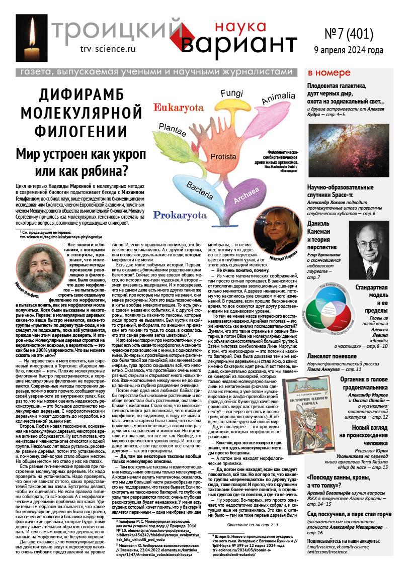ТрВ № 7 (401) за 2024 г.: Дифирамб молекулярной филогении - Троицкий вариант — Наука