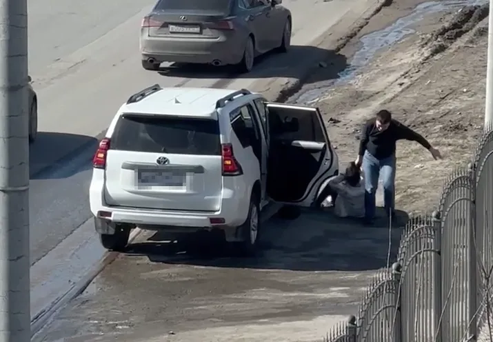 В соцсетях распространяется видеозапись, на которой помощник депутата Горсовета Чувашии от ЛДПР Маркел Егоров бьет свою жену, а потом тащит ее за волосы по обочине и заталкивает в джип.