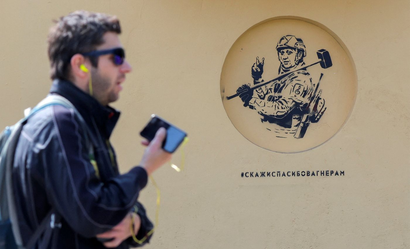 Граффити в Санкт-Петербурге, на котором изображен основатель «ЧВК Вагнер» Евгений Пригожин. Фото: Anton Vaganov / Reuters