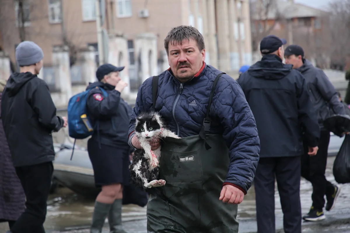 В затопленной части Орска остается много животных, в частности собак — как бродячих, так и дворовых, которых хозяева отпустили с цепей в момент эвакуации. Спасатели вытаскивают на сушу всех, до кого могут добраться сквозь завалы и кто дается в руки, но некоторые животные от стресса становятся более агрессивными. При мне в машину МЧС заходит алабай и садится на место, заготовленное для лежачего больного, которого только что вывезли из затопленного дома. В итоге человека грузят в другую машину, а чтобы выгнать собаку, машину МЧС приходится раскачивать из стороны в сторону в двенадцать рук.