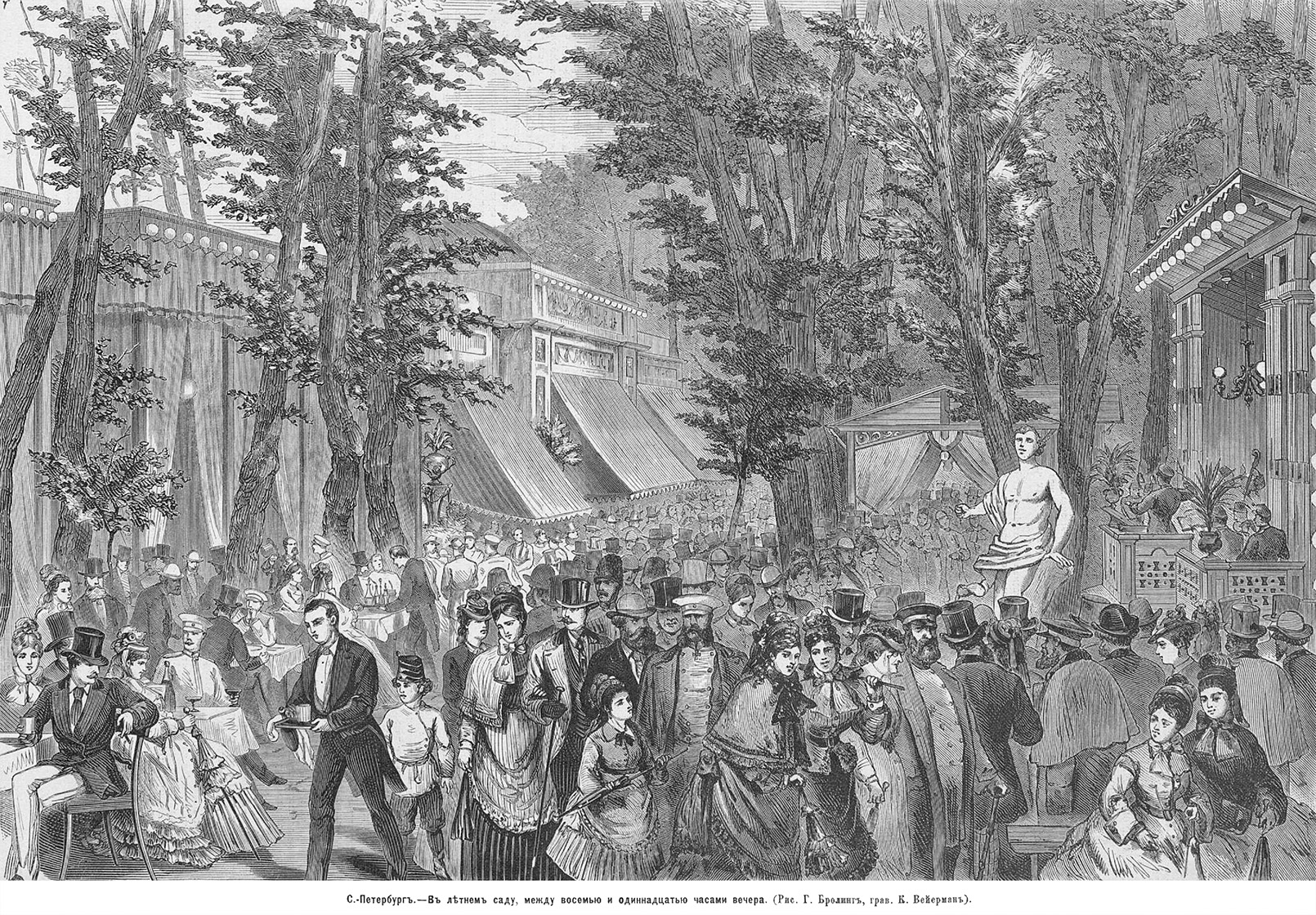 К началу XIX века Летний сад окончательно превратился в общественное пространство: вход на остров был открыт все семь дней в неделю. А в выходные там устраивали развлекательные мероприятия: народные гулянья, лотереи, состязания в беге. Кроме того, в саду периодически играл оркестр, а в буфетах на острове можно было заказать бутерброды и спиртные напитки.