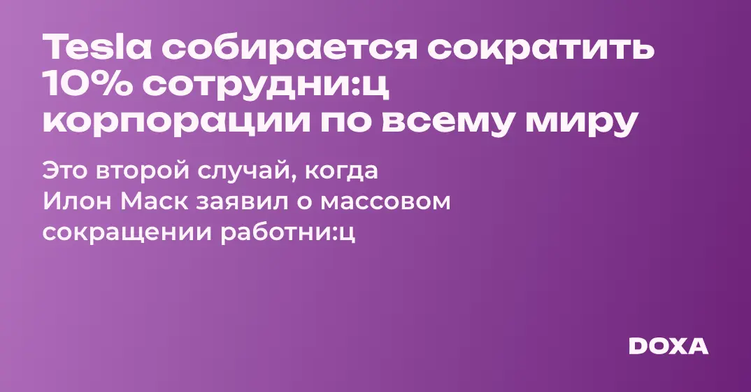 Корпорация Tesla намерена сократить более 10% сотрудни:ц по всему миру.