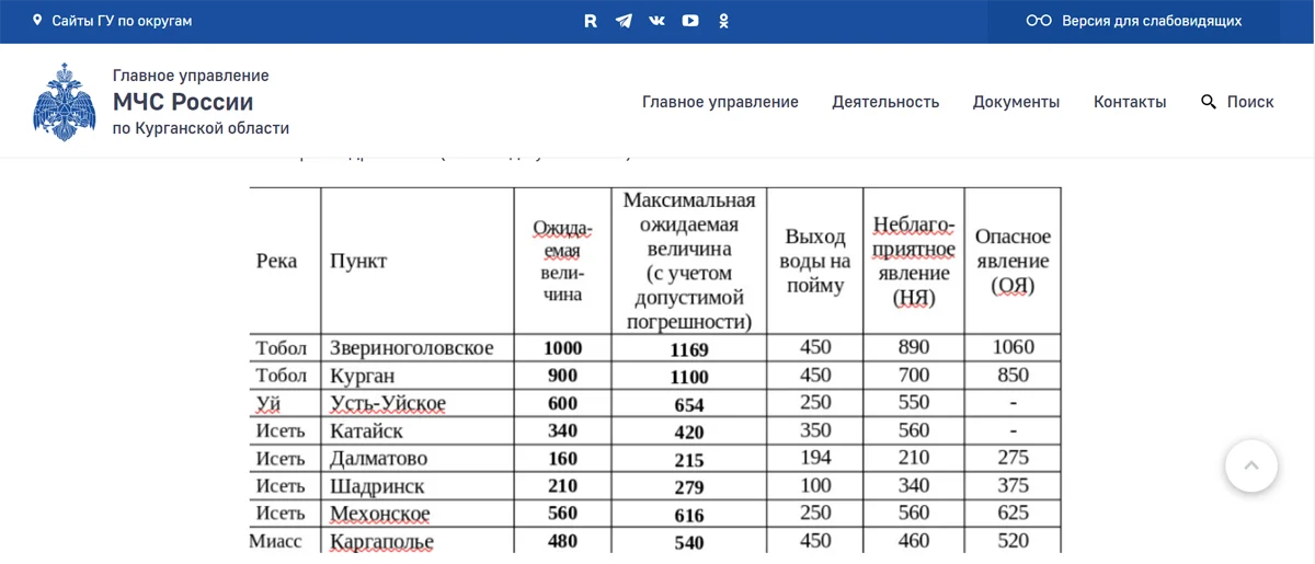 Уровень Тобола в Кургане на 16 часов понедельника составил 685 см, добавив за два предыдущих часа 12 сантиметров. Река вышла в пойму, затапливая дачи на правобережье. При этом подчеркивается, что пока это вода только с реки Уй, впадающей выше Кургана в Тобол, — дошли сбросы с челябинских водохранилищ. Большая вода из Казахстана к Кургану еще только движется. Сирены в городе с воскресного утра воют каждые два часа, ночью тоже. СМС сыплются бесконечно всем, без разбора: «Немедленно эвакуируйтесь!»