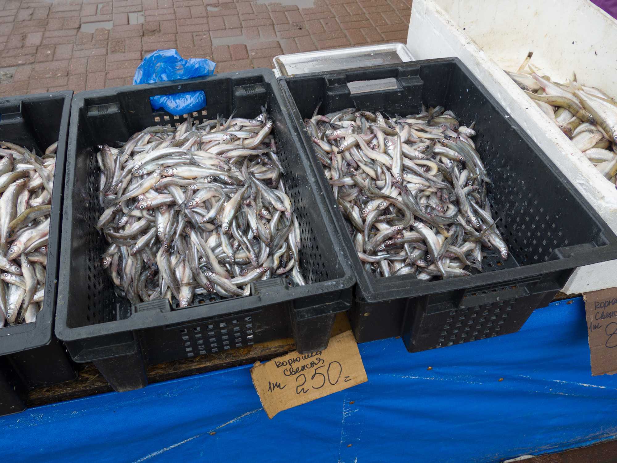 Цены в торговых точках на улицах города ниже, чем на рынках: например, на прошлой неделе корюшку у «Приморской» продавали за 250−950 рублей в зависимости от размера рыбы, сообщил корреспондент «Бумаги».