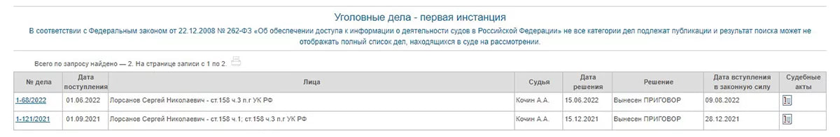 Последний раз мать виделась с сыном в 2022 году, после того, как тот попал в заключение. Но об уголовных делах сына мать предпочитает подробно не рассказывать. По информации из судебных картотек, в жизни Сергея Лорсанова их было два, оба раза он обворовывал отчима. Сначала продал знакомому его циркулярную пилу, а пока тот ходил в магазин, воспользовался его телефоном и снял всю зарплату. Тогда отделался условным сроком на два года. Уже через год история повторилась. Пасынок обманом, с помощью телефона отчима, оформил кредит на 30 тысяч, деньги перевел себе. В этот раз Лорсанова приговорили к реальному сроку – трем с половиной годам лишения свободы.