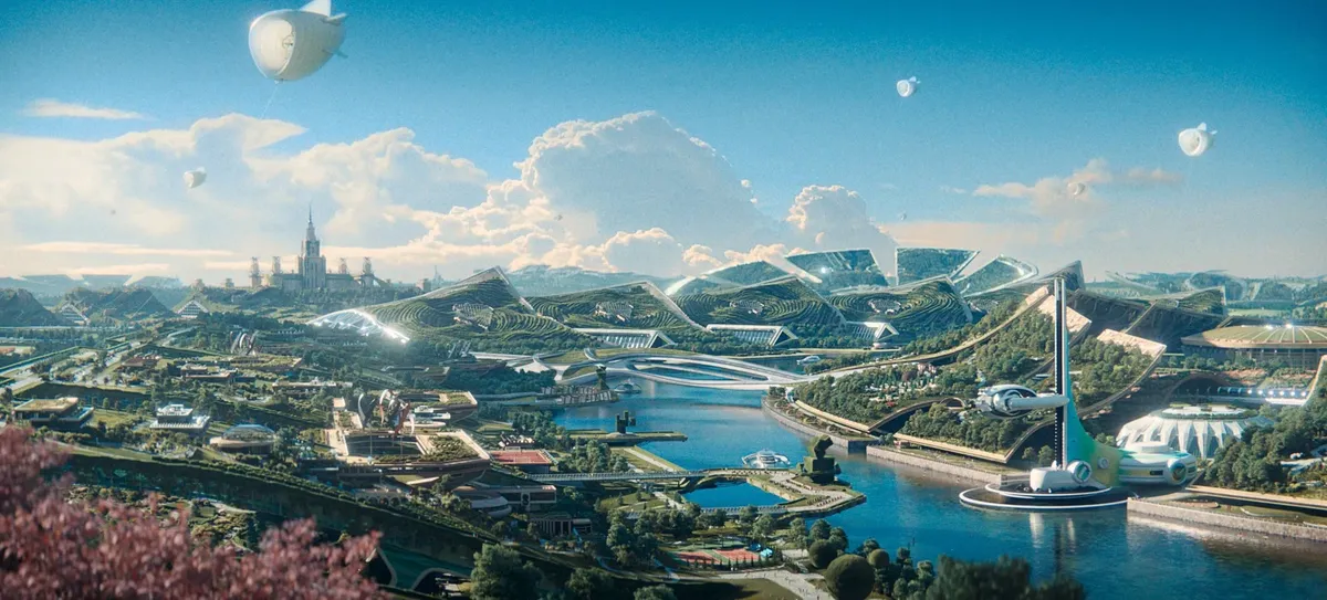Образ будущего предъявлен в двух вариантах: как розово-салатовая благолепная утопия и грязно-коричневая безнадежная дистопия. Алиса живет в прекрасном далеко. В экологическом мире будущего всегда солнце, нет вредоносных машин, вместо зоопарков — клиника для животных, газоны упорядочены ландшафтными дизайнерами в японском стиле. Рядом со школой — Древо жизни (похожее на Эйву из «Аватара» или «Древо жизни» Малика).