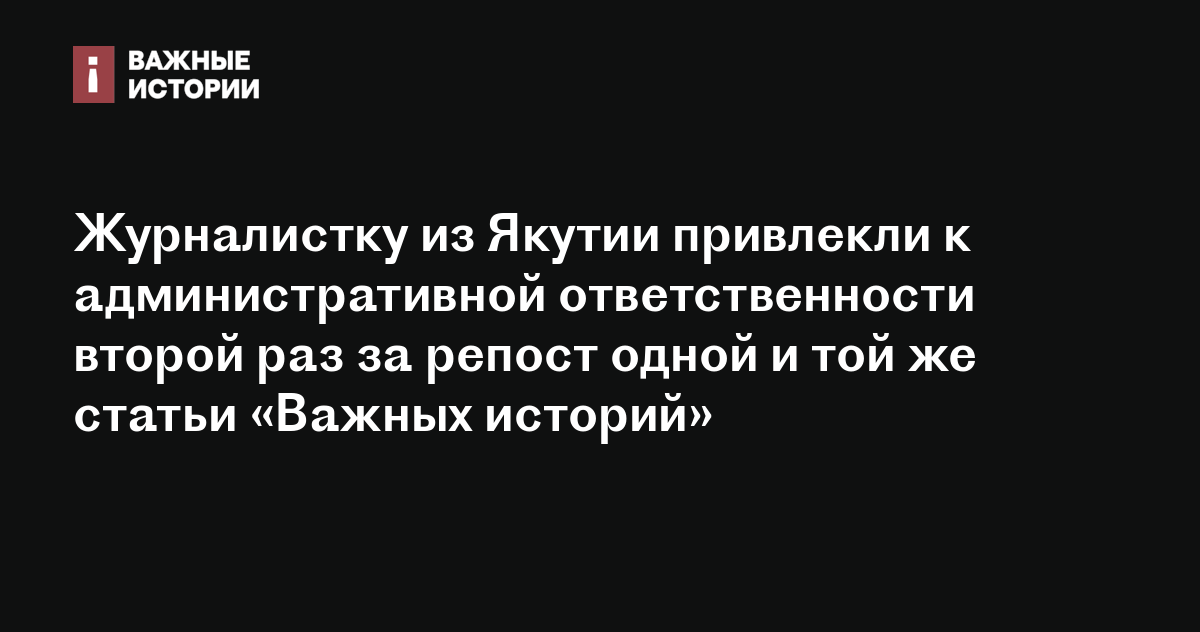Журналистку из Якутии привлекли к административной ответственности второй раз за репост одной и той же статьи «Важных историй»
