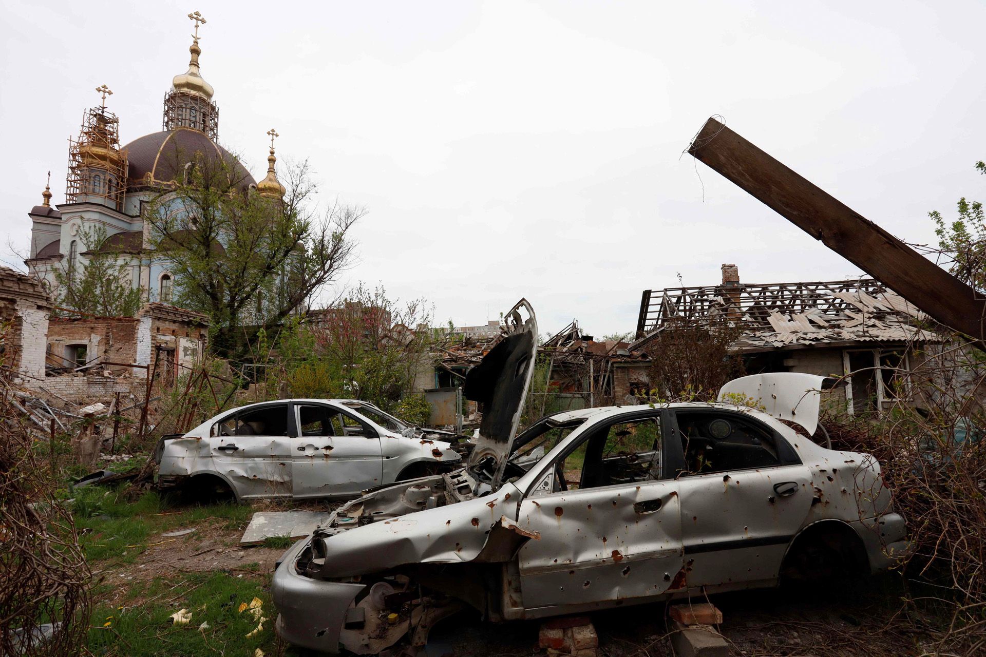 Российские войска весной 2022 года оккупировали Мариуполь. В одном из крупнейших городов Украины во время боев были в той или иной степени разрушены 90% зданий. В августе 2022 года Минстрой России заявлял, что планирует «восстановить» Мариуполь за три года. Как сообщала «Бумага», активное участие в строительстве, которое идет в разрушенном городе, принимает Санкт-Петербург. Немецкие журналисты выяснили, что в строительстве в Мариуполе задействованы и компании из Германии. Правозащитники из Human Rights Watch, изучившие спутниковые снимки города, пришли к выводу, что с марта 2022 по февраль 2023 года в Мариуполе погибли не менее восьми тысяч человек. Жертв, считают они, гораздо больше, в братских могилах хоронили сразу несколько человек, а многие тела погибших могли остаться в домах, которые потом были полностью разрушены обстрелами. На фото, сделанном 16 апреля, один из районов Мариуполя, который еще не начали «восстанавливать».