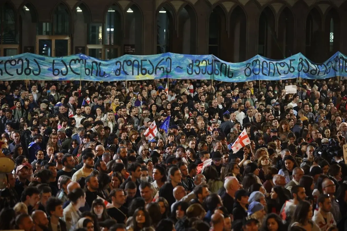 В Тбилиси на проспекте Руставели с понедельника многотысячные акции протеста, люди стоят даже по ночам, известно более чем о 25 задержанных, полиция несколько раз применяла слезоточивый газ. У людей в руках флаги Евросоюза и Грузии, а также плакаты против закона об иноагентах.