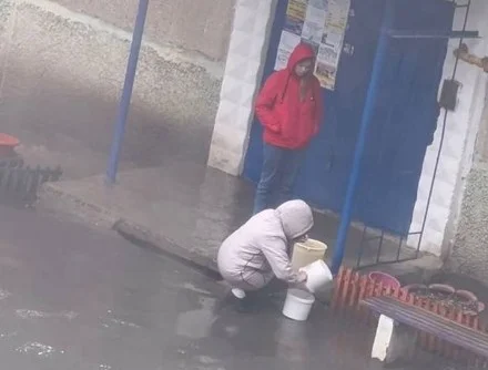While the authorities had assured residents they would be supplied with emergency drinking water, many have not received anything, leading them to hang buckets from their windows to collect rainwater.