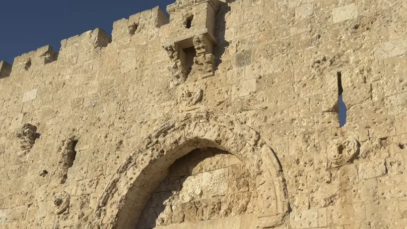 Сионские ворота, одни из семи ворот Старого города Иерусалима. На стене видны следы от пуль боев 1948 и 1967 годов.
