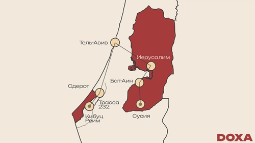 Карта Израиля и Палестины изрезана пунктирными линиями. Одни и те же места называются по-разному, эти названия несут отпечатки войн прошлого. В нынешней войне участвуют не только солдат:ки: атака 7 октября 2023 года коснулась всех израильтян:ок. Прочитав этот текст, вы проедете со мной по Израилю и Западному берегу, и увидите, как израильское общество изменилось за время войны. Время чтения — 20–25 минут.