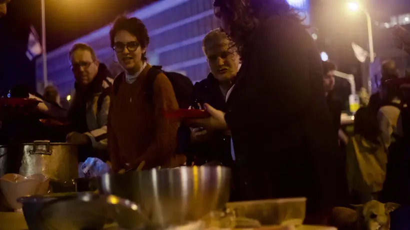 «У них уже нет цели, — говорит Гай, молодой левый активист, раздающий еду. — Они просто стреляют ради того, чтобы стрелять. Понятно, что они не уничтожат ХАМАС». Сам Гай стал антивоенным активистом после службы в ЦАХАЛ, где он «посмотрел в лицо оккупации». Гай скрывает свой активизм от семьи. «Я понимаю, что, возможно, мы тут под угрозой [от ХАМАС], — продолжает он. — «Но это не дает Израилю права на геноцид».