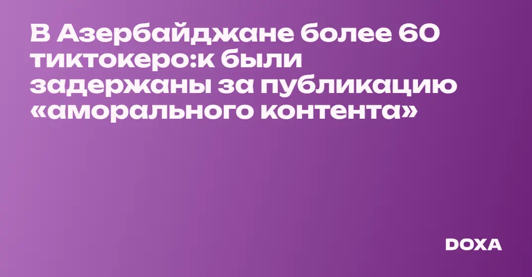 Представитель МИД Азербайджана Анар Гафаров сообщил, что за последние три месяца власти страны «наказали» более 60 пользователь:ниц тиктока за «открытое неуважение к обществу и поведение, противоречащее моральным ценностям», а также публикацию «аморального контента». По словам чиновника, некоторых из них арестовали, некоторых оштрафовали, а с остальными провели профилактическую беседу.