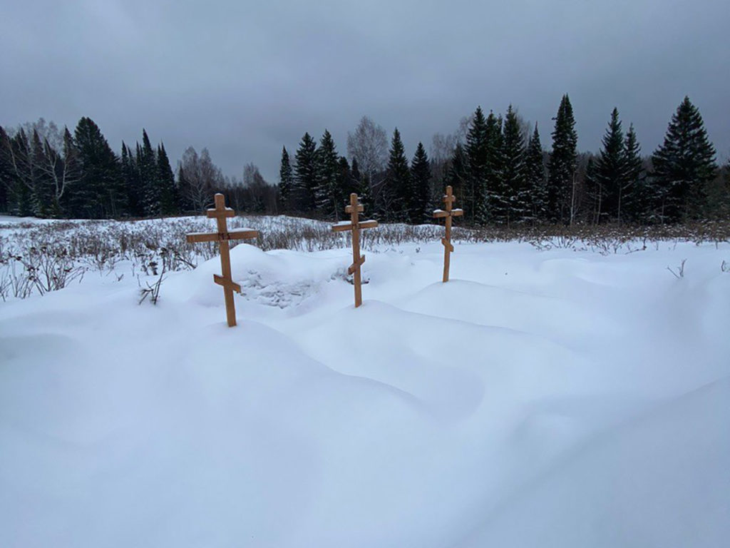 В начале февраля 2022 года рабочие ритуальной компании «Скорбь» копали на кладбище новую могилу для 91-летней Матрены Азовцевой — и вдруг лопата наткнулась на что-то твердое. Это был череп — а вслед за ним в яме обнаружились три тела в полиэтиленовых пакетах. По словам Олега, одного из сотрудников кладбища, который копал ту могилу, от тел исходил запах гнили, они разложились лишь частично. «Честно, у меня первый раз такое, сколько мы копали могил», — добавляет Олег. (Свою фамилию он попросил не указывать; Наталья Терлецкая, руководительница компании «Скорбь», обеспечивающей работы на кладбище, сообщила «Холоду», что у нее «нет желания разговаривать на эту тему».) Источник, знакомый с ситуацией, сказал «Холоду», что тела пролежали в земле около полугода.
