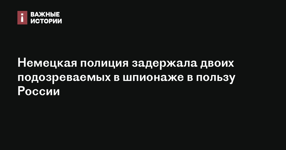 18 апреля немецкая полиция задержала двоих граждан Германии по подозрению в шпионаже в пользу России. Об этом сообщил Spiegel со ссылкой на свои источники.