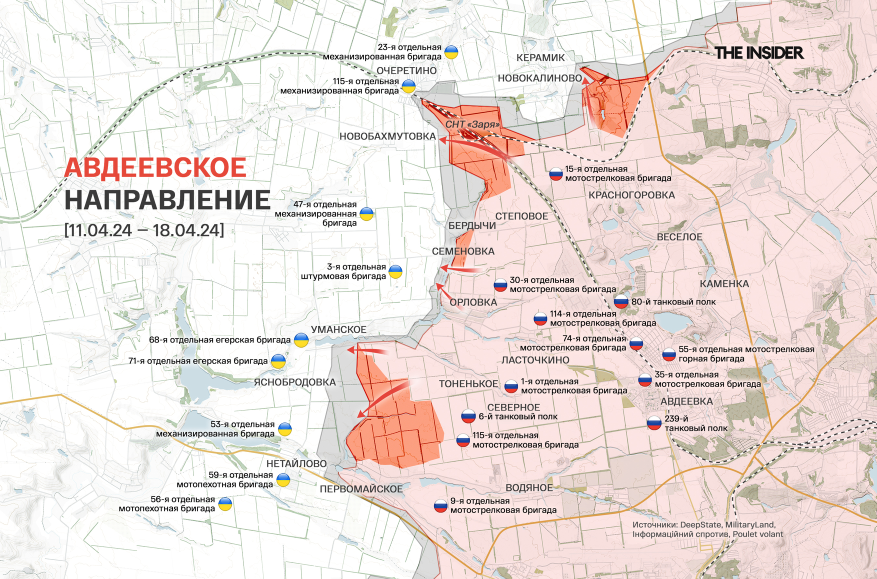 - ВС РФ развивают наступление к северу от Авдеевки — бои идут в населенных пунктах Очеретино и Новокалиново;