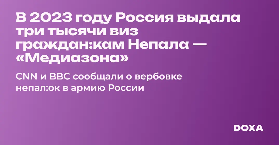 В 2023 году Россия выдала три тысячи виз граждан:кам Непала — «Медиазона». CNN и BBC сообщали о вербовке непал:ок в армию России