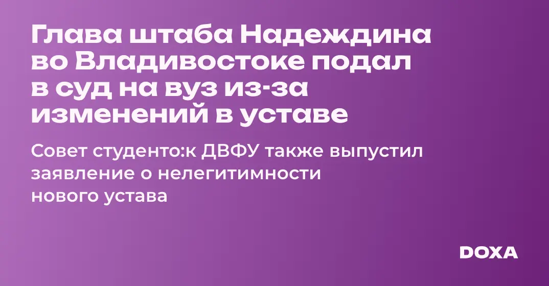 Глава штаба Надеждина во Владивостоке, студент ДВФУ Игорь Краснов подал заявление в суд на изменение в уставе вуза.