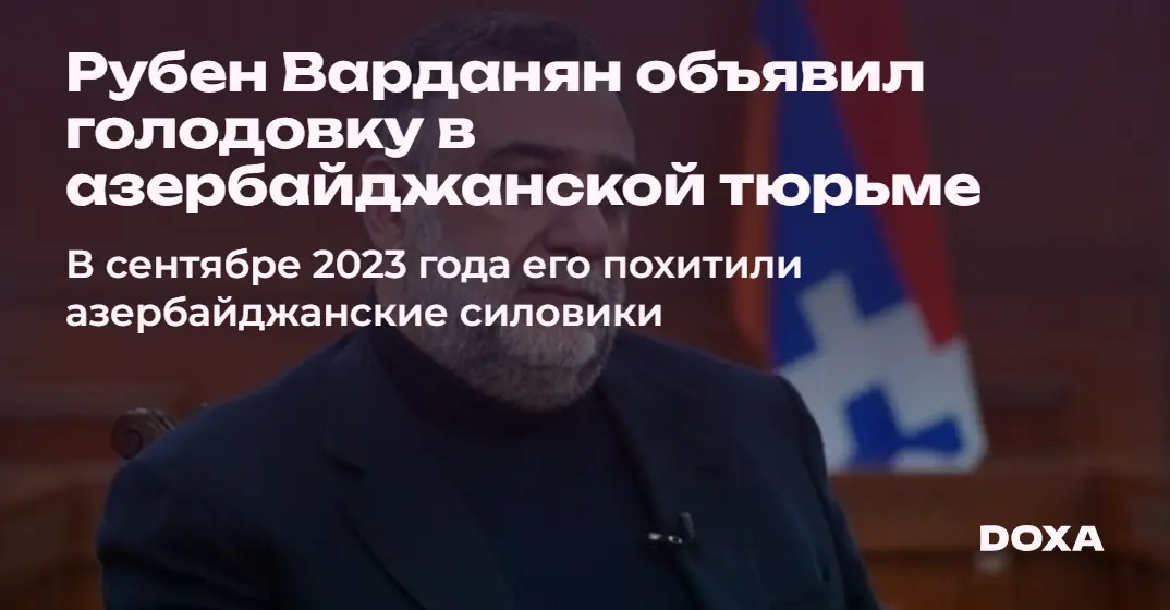 Бывший государственный министр Нагорно-Карабахской Республики Рубен Варданян, задержанный азербайджанскими силовиками в 2023 году в ходе агрессии Азербайджана, объявил голодовку в бакинской тюрьме. По данным семьи политика, Варданян объявил голодовку еще 5 апреля. Судебный процесс по его делу был перенесен на май 2024 года. В обращении, переданном его семьей, он потребовал отпустить всех армянских политзаключенных, которые находятся в Азербайджане.