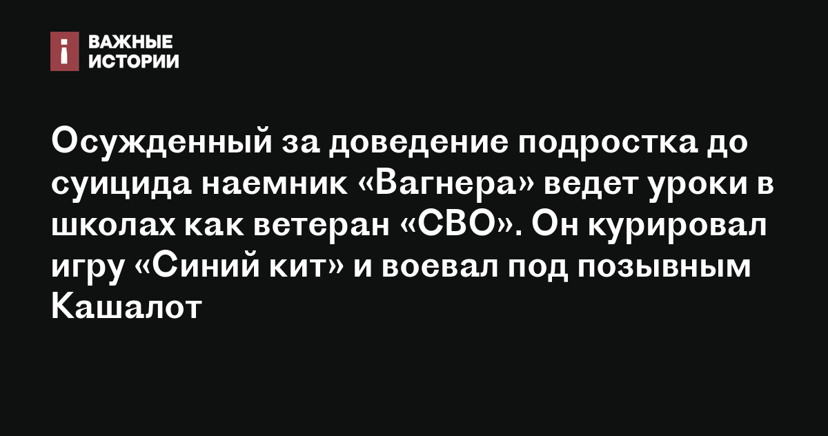 Осужденный за доведение подростка до суицида наемник «Вагнера» ведет уроки в школах как ветеран «СВО». Он курировал игру «Синий кит» и воевал под позывным Кашалот