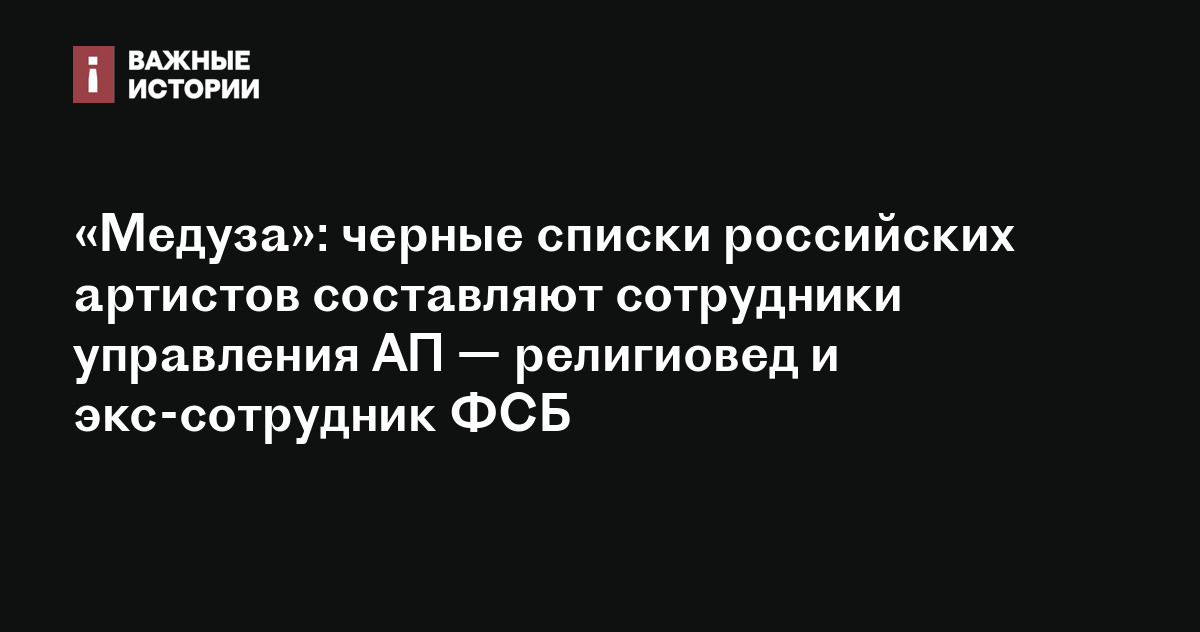 «Медуза»: черные списки российских артистов составляют сотрудники управления АП — религиовед и экс-сотрудник ФСБ