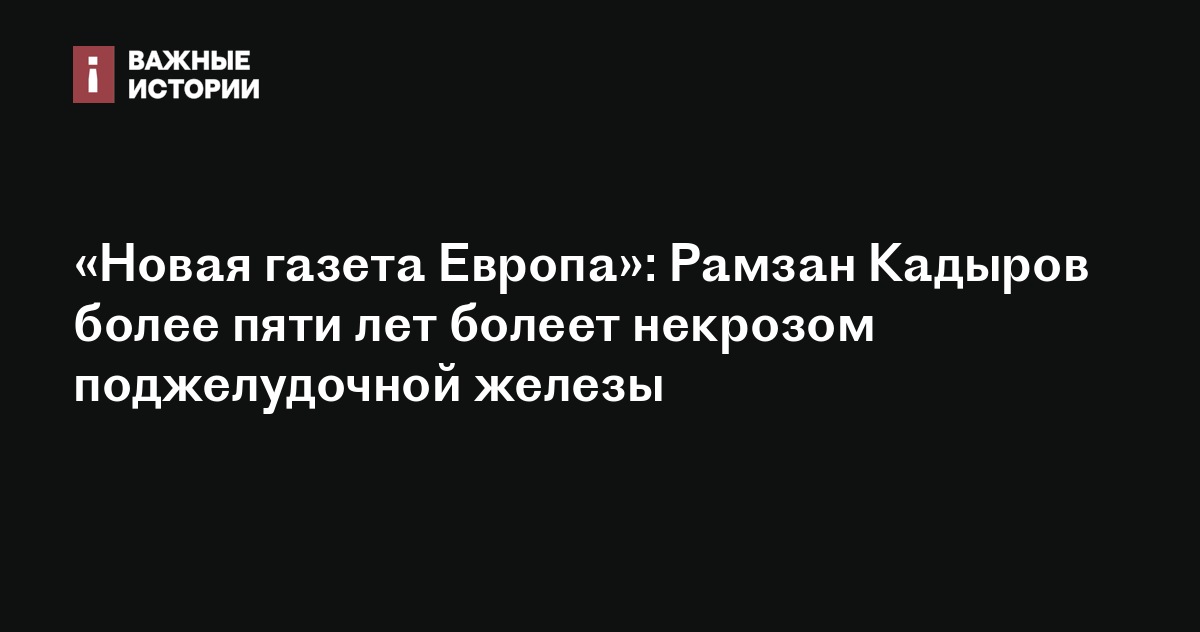 Главе Чечни Рамзану Кадырову в январе 2019 года поставили диагноз «некроз поджелудочной железы». Об этом сообщает «Новая газета Европа».