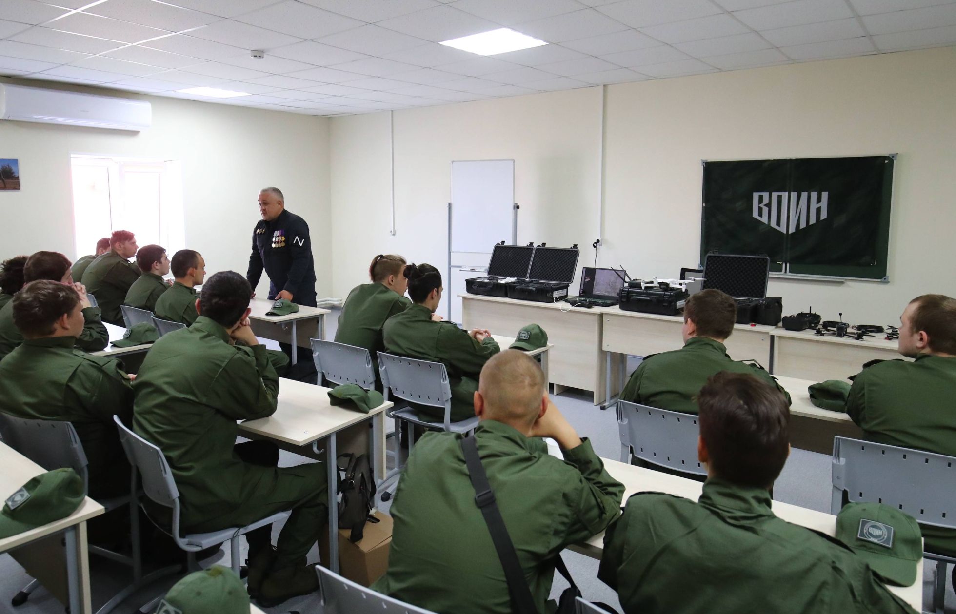 Кирилл Брага / Спутник / IMAGO / SNA / Scanpix / LETA В Волгограде отделение «ВОИНа» открыли в апреле на базе Спортивной школы «Юный ястреб» имени Героя Советского Союза А.М. ЧисловаКирилл Брага / Спутник / IMAGO / SNA / Scanpix / LETA В программе занятий, сообщается на сайте центра, — «управление беспилотными летательными аппаратами, организация связи, навыки оказания первой помощи, азы огневой, тактической и инженерной подготовки, основы национальной безопасности России»Кирилл Брага / Спутник / IMAGO / SNA / Scanpix / LETA «Обучение проводят инструкторы, многие из которых являются участниками боевых действий. Все они освоили специальную программу профессиональной переподготовки и получили необходимую квалификацию», — говорится в сообщении об открытии отделения в ВолгоградеКирилл Брага / Спутник / IMAGO / SNA / Scanpix / LETA Знания, полученные в Центре военно-спортивной подготовки и патриотического воспитания молодежи, считают в «ВОИНе», «пригодятся вне зависимости от выбранной профессии»Кирилл Брага / Спутник / IMAGO / SNA / Scanpix / LETA «Владимир Владимирович Путин поставил задачу — воспитывать патриотов нового поколения — мы ее выполняем», — говорил в апреле 2024 года директор волгоградского отделения Центра «ВОИН» Игорь Воробьев