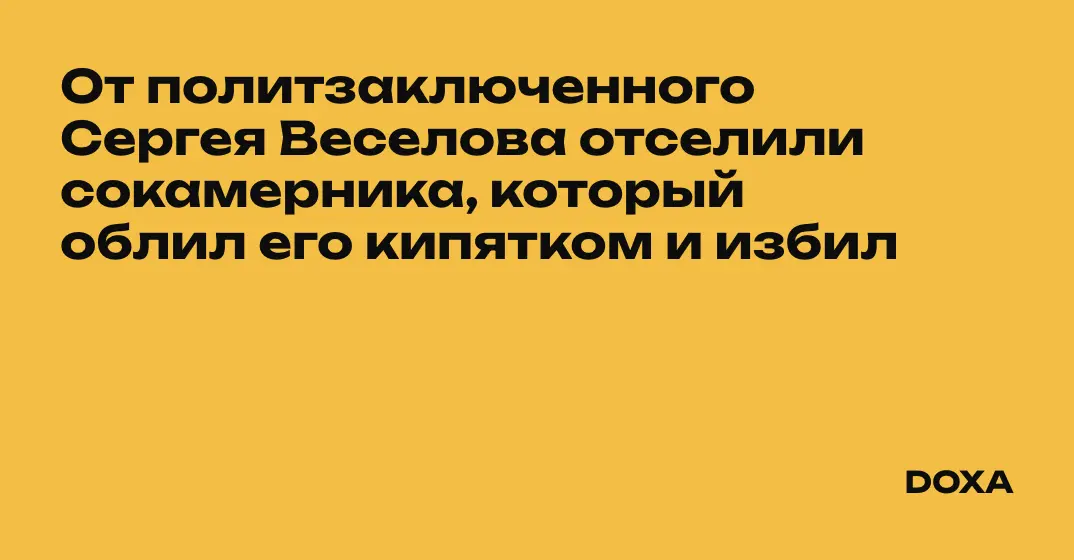 Администрация СИЗО-1 по Ивановской области отселила от политзаключенного Сергея Веселова сокамерника, который облил его кипятком и избил, сообщает ASTRA со ссылкой на адвоката Веселова Оскара Черджиева. Этого добивались адвокат и местный член общественной наблюдательной комиссии Александр Коротков.