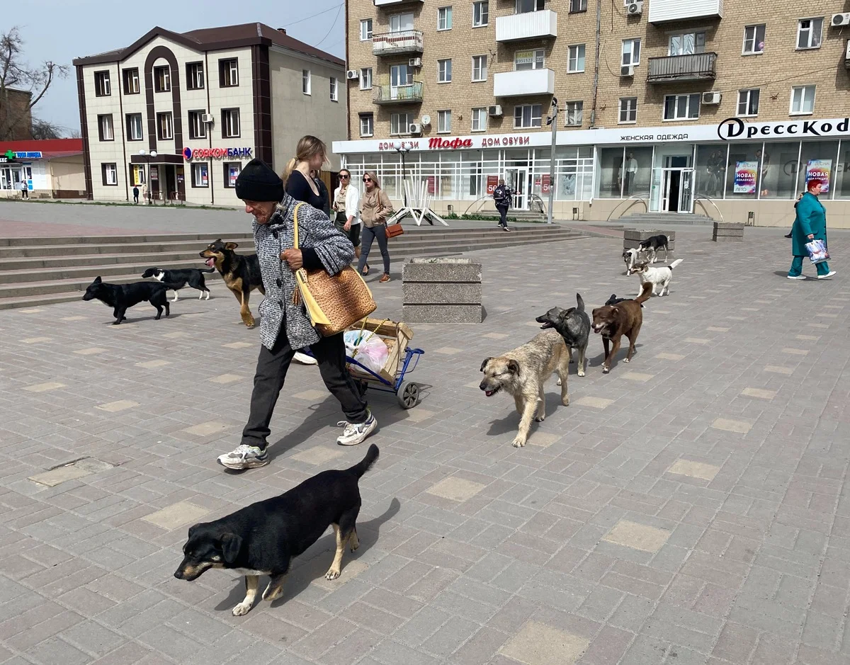 В Шахтах чуть свернешь в какой-нибудь двор — холм из бутылок, шин, матрасов, протухшей еды и возмущенных черных ворон, пытающихся отыскать что-то съестное. Начинает припекать солнце — усиливается вонь. В мусоре роется палевый пес. Находит упаковку из-под чего-то куриного — внутри в соке еще плавает несколько кусочков мяса. Начинает жевать пленку с картонкой. В городе — десятки бездомных собак.