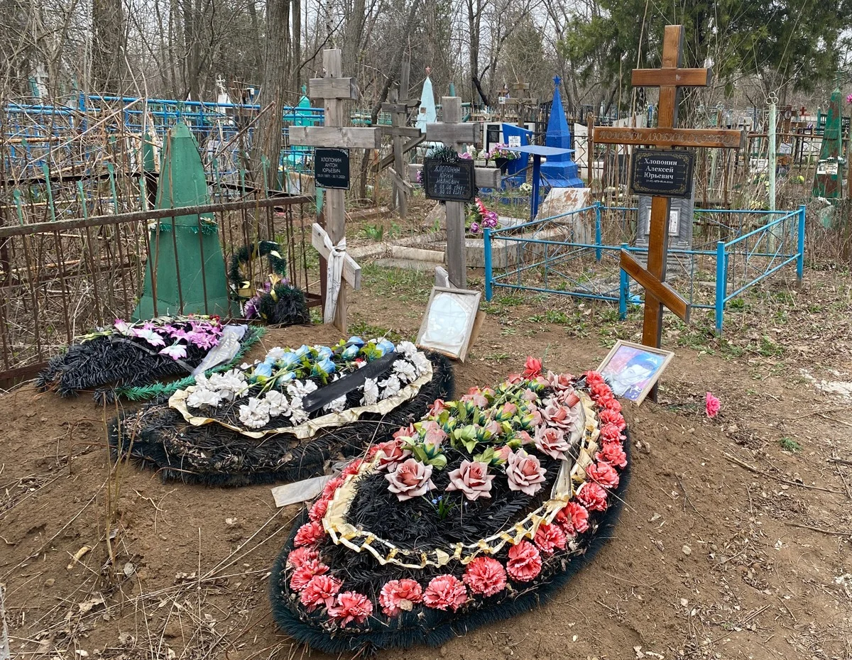 На обратном пути в Ростов заезжаю на городское кладбище Шахт. Вижу «дозахоронения» к родственникам. Рядом с могилами — флаги. Обращаю внимание на одну могилу. Хлопонин Юрий Иванович. Умер в 72 года в 2021 году. По правую сторону от его могилы — крест: Хлопонин Алексей Юрьевич. Вероятно, его старший сын. Погиб в 50 лет, в декабре 2022 года. На могиле — фотография мужчины в военной форме. По левую сторону от отца — другой крест: Хлопонин Антон Юрьевич. Ему было 35 лет, он погиб за месяц до старшего брата. Всю обратную дорогу я думаю об их матери.