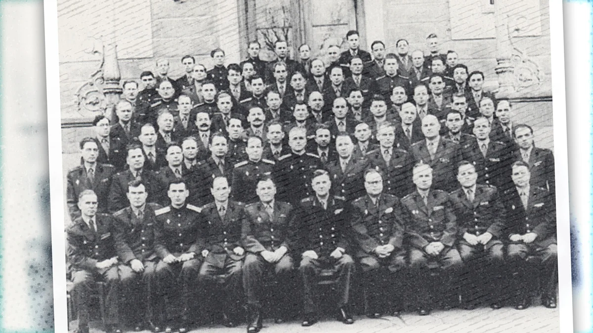 Выпускной класс Артиллерийской инженерной академии имени Дзержинского; Олег Пеньковский — третий справа в первом ряду, приблизительно 1960 год. Снимок из брошюры «Анализ ЦРУ сил Варшавского договора: Важность тайных сообщений». Фото: Central Intelligence Agency / Flickr