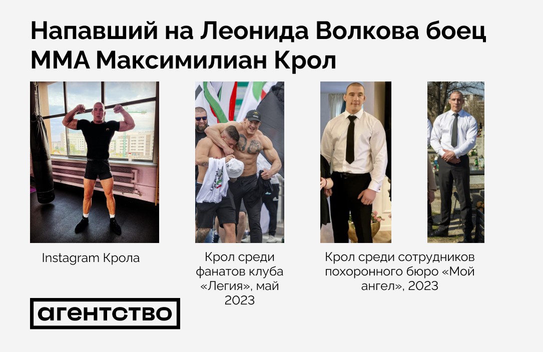 Одним из предполагаемых нападавших на Леонида Волкова граждан Польши оказался боец ММА Максимилиан Крол, выяснило «Агентство». В конце 2023 года он также работал в похоронном агентстве.