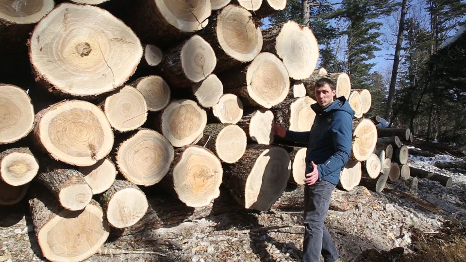— Уже через две недели заканчиваем работу, — рассказывает он, представляясь Михаилом и кивая в сторону штабелей с древесиной. — Скоро снег растает, здесь будет не проехать. На другие участки переберемся — тоже в заказник, но с другой стороны гор. А сюда зимой опять приедем — до 2027 года аренда.