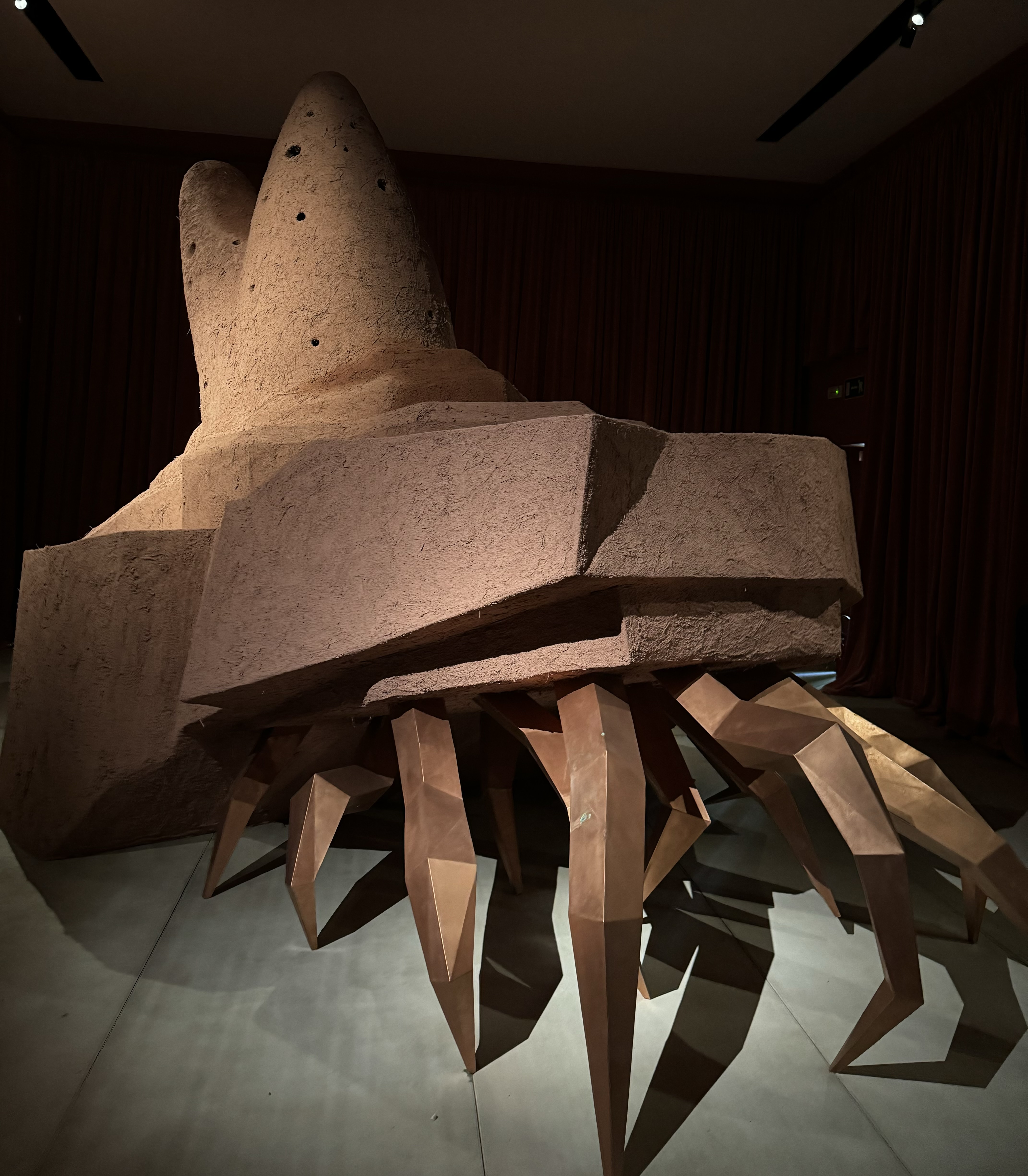 Второй павильон, пользующийся огромным успехом (я простоял в очереди час), принадлежит Египту. Подозреваю, что он впервые в истории Биеннале привлекает столько посетителей. Именитый художник Ваэль Шоуки сочинил и поставил оперу "Драма 1882" о том, как драка мальтийца с погонщиком ослов в Александрии привела к оккупации Египта англичанами. Декорации словно из "Кабинета доктора Калигари", у каждого персонажа – от королевы Виктории до российского посла – незабываемый облик, Шауки мастерски придумал костюмы, создал декорации и написал музыку. Фильм-оперу дополняет сумасшедшая мебель, как будто искореженная в энтомологических фантазиях Кафки. В палаццо Гримани можно посмотреть еще один фильм Шоуки по мифам Древней Греции; голоса арабских сказителей звучат в руинах Помпеи и на берегах Нила. Все боги и титаны носят карнавальные маски, есть даже человек-колонна, а среди них бродит всамделишный бегемот-подросток.