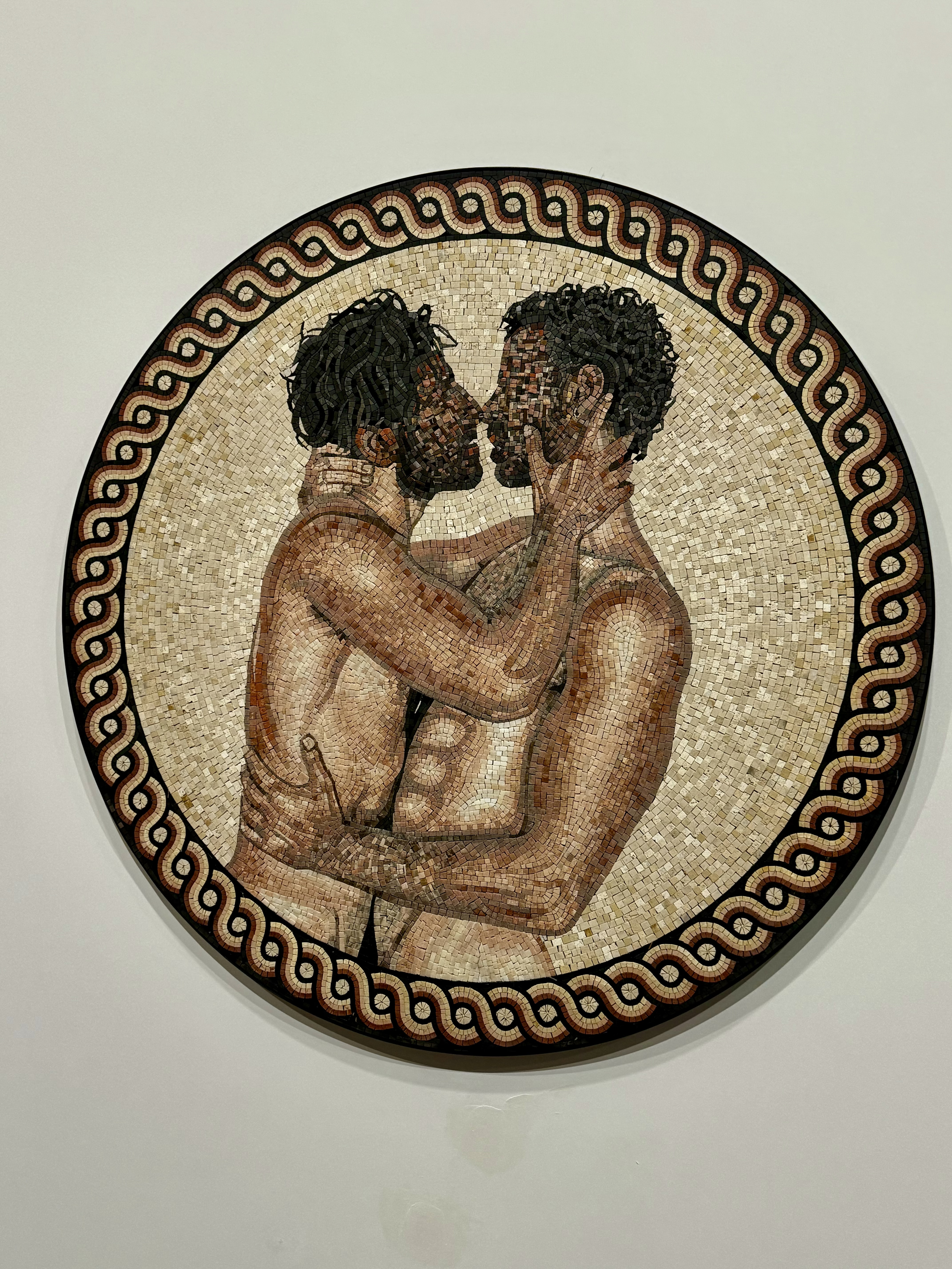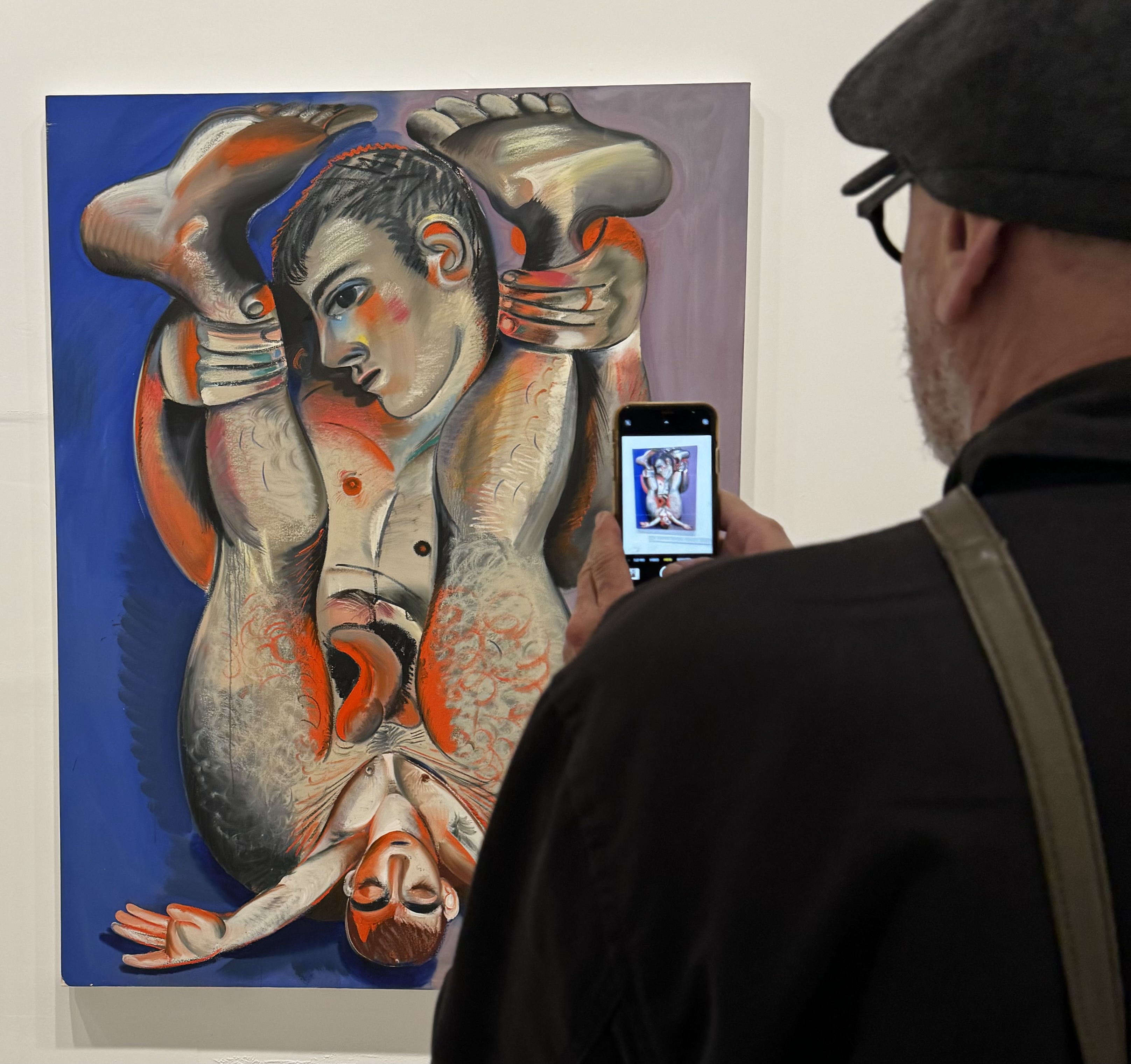 Неподалеку от гомоэротической мозаики ливанца Омара Мисмара ЛГБТ-активист из Судана Ахмед Умар показывает свой коронный номер – танец невесты. А самый интересный и самый радикальный художник из квир-кластера Биеннале, живущий в Нью-Йорке Луис Фратино, изображает мир без женщин, где мужчины увлечены друг другом, создают семьи и способны рожать. Даже в натюрморты Фратино добавляет элементы гомоэротики. Возможно, это форма самовлюбленности, потому что одна из работ называется "Целую собственную ногу".