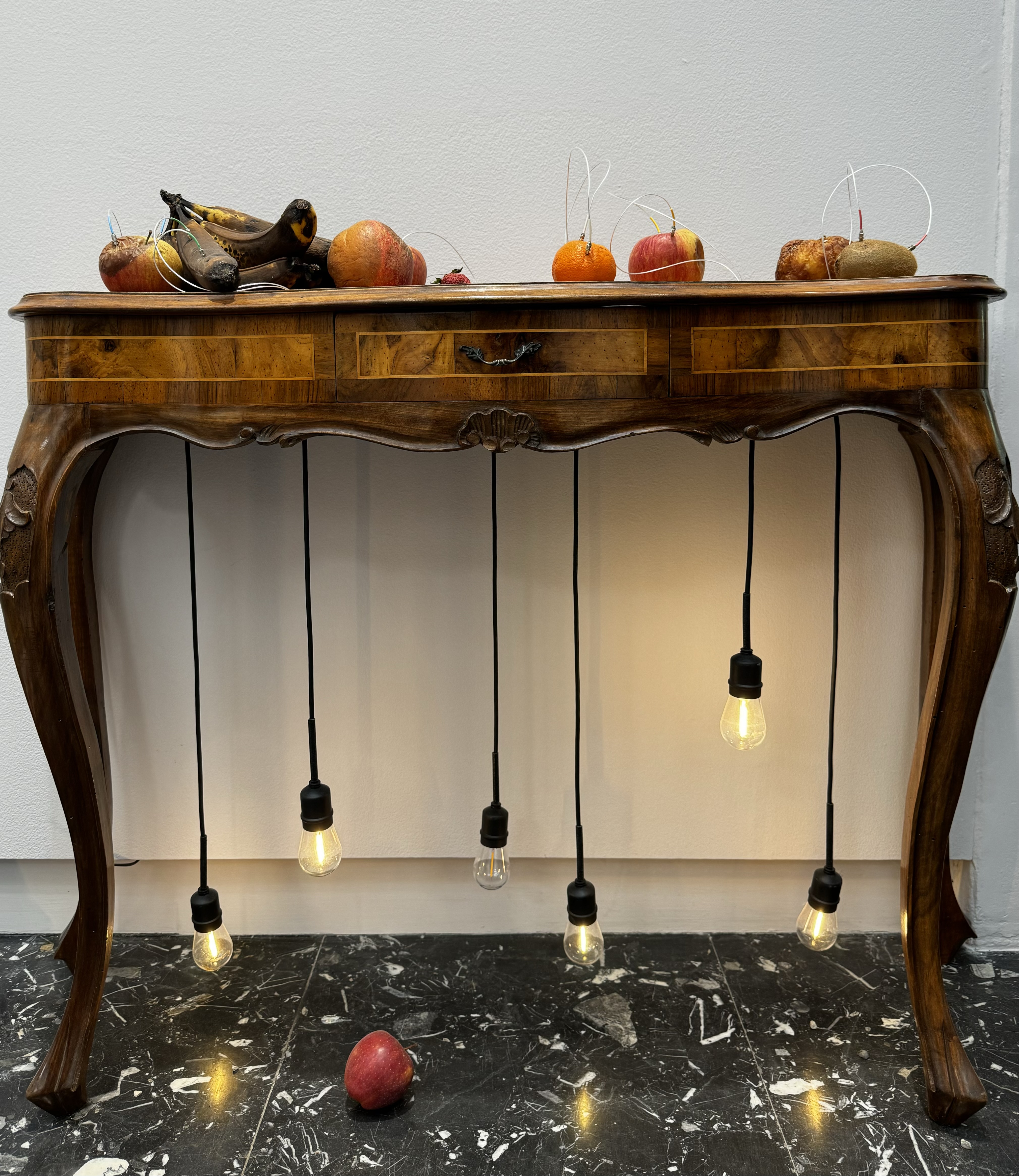В соседнем павильоне Японии тоже происходит небывалое. Художница Юко Мори использовала для создания скульптур искусственные протечки воды. Жидкость направляется неортодоксальными путями через систему шлангов и бытовых предметов, а рядом гниют овощи и фрукты с венецианских рынков. Во все – от арбуза до виноградины – вставлены электроды, и энергия разложения преобразуется в электричество, питающее лампочки. Возможно, это дешевый трюк, но я не электрик, так что верю художнице.