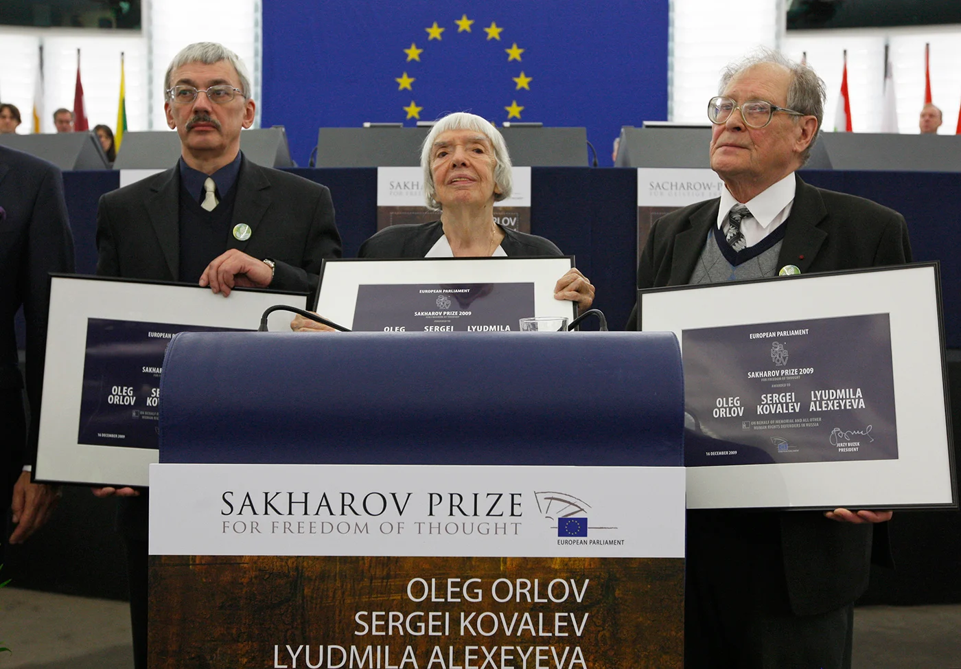 Олег Орлов, Людмила Алексеева и Сергей Ковалев в Европейском парламенте в Страсбурге в 2009 году. Фото: Vincent Kessler / Reuters