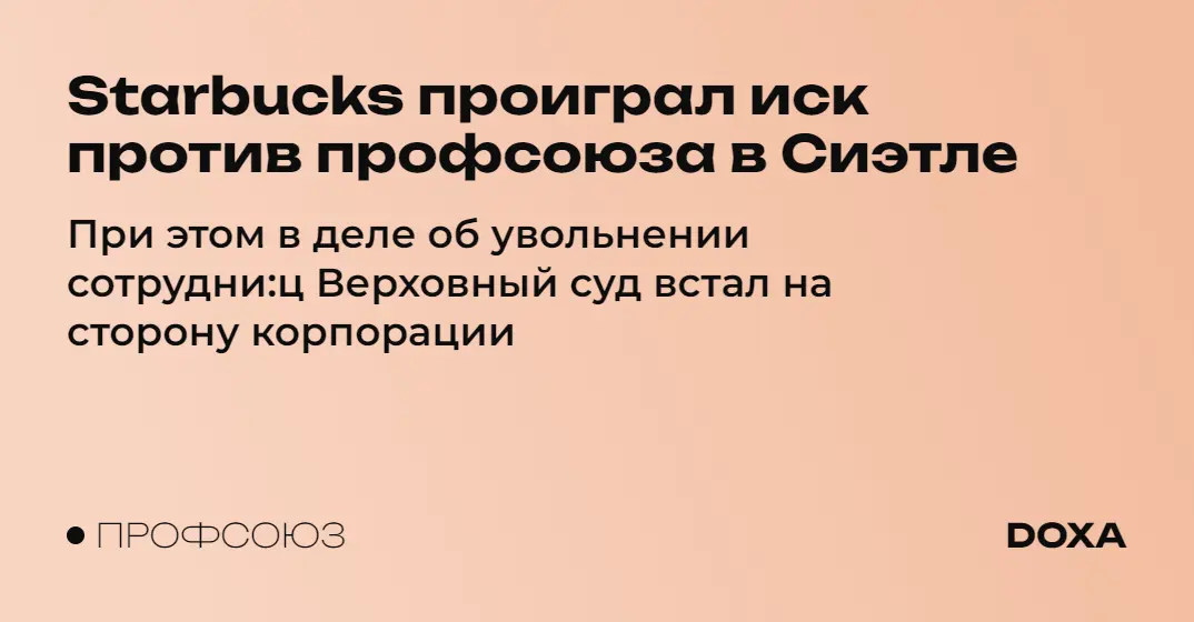 При этом Верховный суд США согласился с доводами Starbucks в деле об увольнении семи сотрудни:ц кофейни в Мемфисе — они занимались организацией профсоюза Workers United. Поводом для увольнения стало общение с журналист:ками по окончании рабочего дня в помещении кофейни.